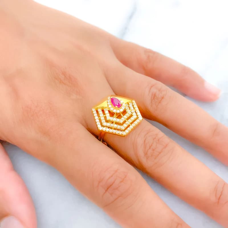 ICONIC LAYERED HEXAGON CZ RING
