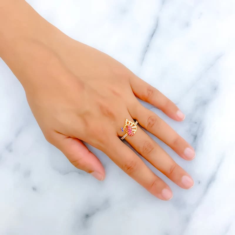 CHIC STRIPED PEACOCK CZ RING